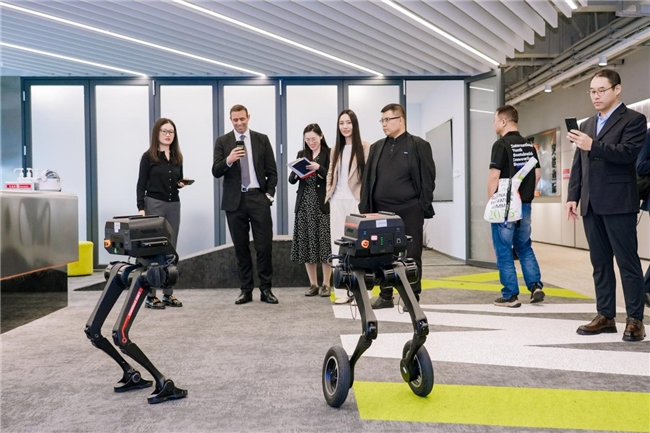 参访第三站为逐际动力。这家聚焦通用机器人研发的企业,以一款全尺寸人形机器人“TRON 1”震撼全场。该机器人采用“三合一”模块化足端设计,可切换双足、四轮足等多种形态,适应工业搬运、灾害救援等复杂场景。
