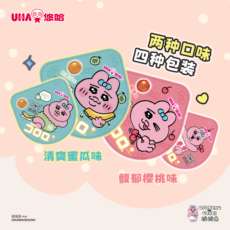 在这个地球上,绝无仅有的、唯一的、独特的生物——可怜又可爱的UHA悠哈新朋友,“倒霉天赋”点满的裤裤兔,携悠哈酷露露新口味甜蜜登场!两款新品均为在日本也备受喜爱的两种水果风味,在标志性的胶原蛋白肠衣包裹下,口感Q弹脆爽,果香浓郁。