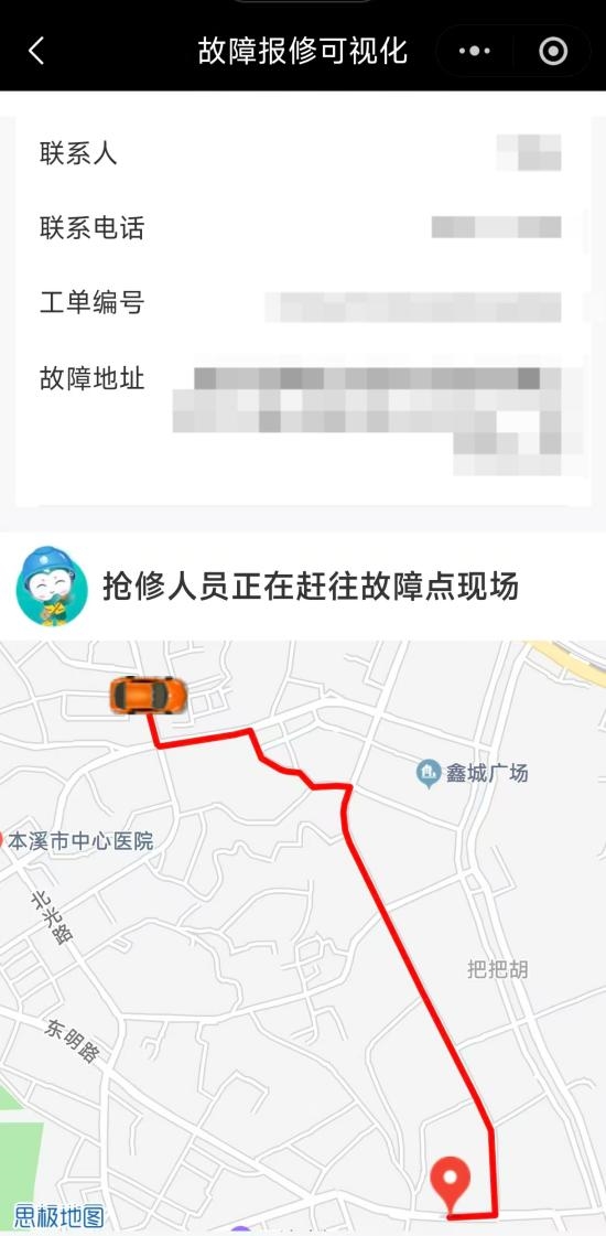 过去,用户报修后往往只能被动等待,无法获知抢修人员何时出发、是否抵达现场、抢修进展如何,在等待复电过程中容易产生焦虑情绪。现在,用户通过“网上国网”客户端,不仅可以线上填写报修信息,还可以像使用外卖或打车软件一样,便捷查询、实时查看抢修人员定位、预计到达时间、抢修进度等,缓解因信息不对称导致的烦恼,用电更安心。