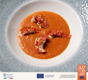 用细筛过筛混合物,去掉龙虾壳。将过筛后的酱汁转移回炖锅中。加入西红柿泥。用盐和胡椒调味,用中火将所有食材一起煮8-10分钟。从火上取下,用棒式搅拌器打成泥。然后在上菜前加入煎好的龙虾肉。