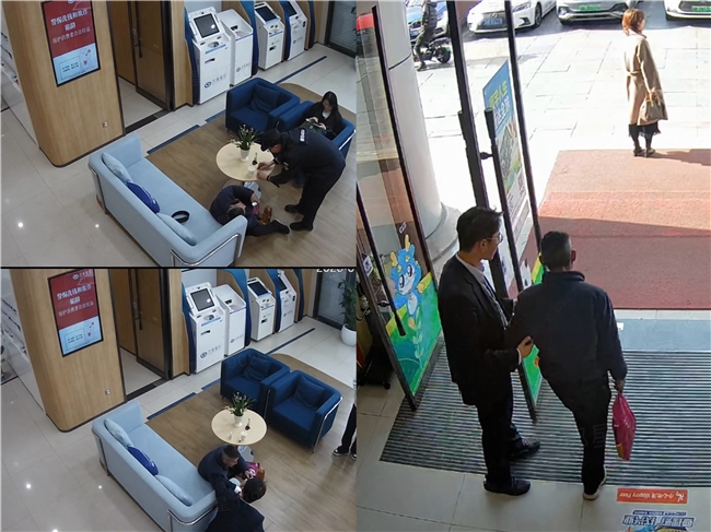 危急时刻,支行保安人员迅速反应,立即端来温水;工作人员第一时间上前询问是否需要拨打120急救电话,客户表示随身携带了急救药片。会计主管张主管闻讯后,迅速赶到现场,全程关切照护,轻声安抚客户情绪,并协助其服下药片。监控画面显示,从客户突发不适到完成初步救助,整个过程仅用时不到5分钟,展现了支行员工的专业应急能力。