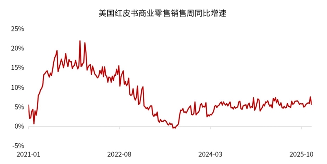 美联储对美国经济的描述:经济活动正以温和的速度扩张。以商业零售销售的高频数据来看,目前维持在5%以上的周同比增幅水平。