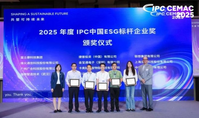 同时,龙旗在本次大会中获颁“2025年度IPC中国ESG标杆企业奖”。作为全球电子制造业最具影响力的标准组织之一,IPC Asia设立IPC中国ESG标杆企业奖旨在表彰近3年在ESG领域中有突出表现,具备影响力和领导力的企业,为行业内的其他企业树立示范标杆,引领实践方向。
