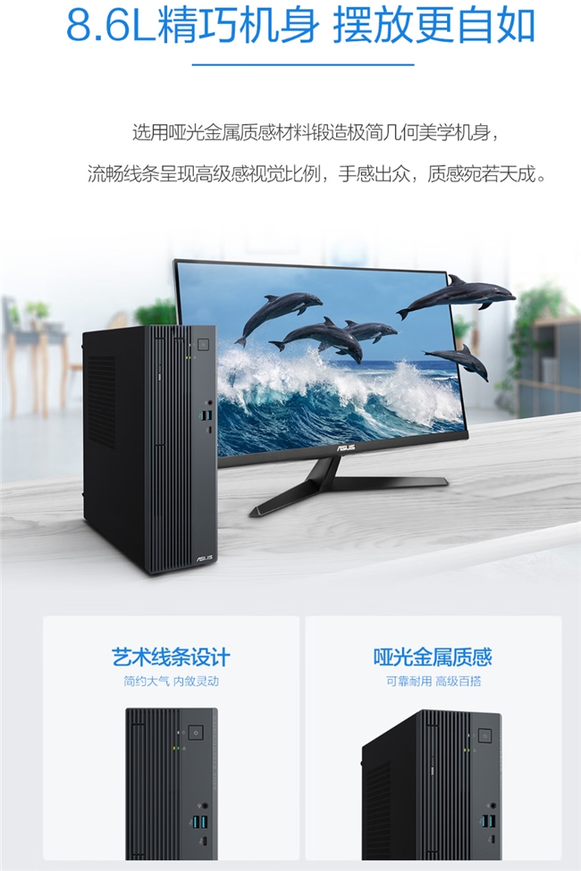 华硕破晓6X商务台机采用仅8.6升的精巧机箱,线条简洁利落,可轻松置于桌面下方或显示器旁,极大释放办公桌使用面积,有助于营造整洁、专注的工作环境。机箱更搭载“免工具拆装”设计,侧板可徒手开启,硬件升级与日常维护更加简便,有效降低企业的IT运维成本。