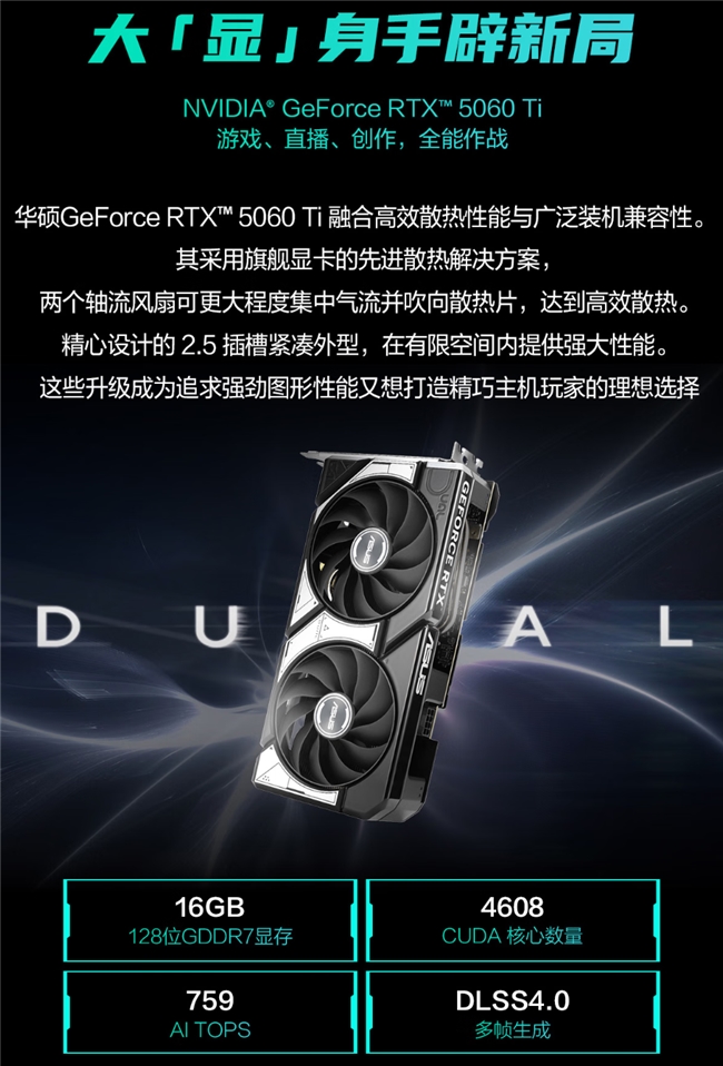 决定视觉沉浸感的关键,则在于图形渲染能力。华硕天选6X配备了NVIDIA GeForce RTX 5060Ti独立显卡,其基于全新的Blackwell架构,并拥有4608颗CUDA核心及16GB GDDR6X大容量显存,图形编辑、渲染实力强大;更集成了DLSS 4多帧生成、实时光线追踪与光线重建等前沿技术。让玩家无论是在《赛博朋克2077》中体验绚烂的夜之城,还是在《黑神话:悟空》里感受细腻的东方奇幻世界,都能在2K全高画质下感受高帧率的沉浸式视觉体验。