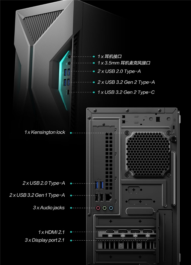 此外,主机具备优秀的扩展能力,最高可支持升级至64GB内存及2TB PCIe 4.0 SSD + 2TB HDD的混合存储,为未来数年的游戏储备与内容创作提供了海量且灵活的存储方案。