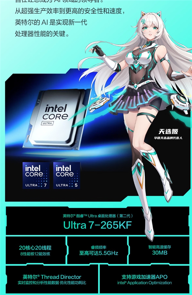 性能的基石来自于强大的核心运算单元。华硕天选6X搭载英特尔酷睿Ultra7-265F处理器,其采用先进的N3B制程工艺与混合架构设计,拥有20核20线程,最高睿频可达5.5GHz,拥有出色的单核算力及充沛性能;不仅能胜任市面各类热门网游高帧运行的任务,更能够轻松驾驭当下大型3A游戏复杂的多线程负载,同时在游戏中保持后台语音、直播推流或多任务处理的流畅运行,为持续的高帧率输出提供了坚实而稳定的算力保障。