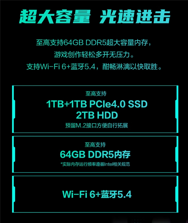 除了硬核性能外,疾速的响应是游戏体验的关键一环。这款华硕天选天选6X配备了32GB DDR5高频内存,为游戏载入、场景切换与多任务处理提供了疾速的数据交换能力。同时,其标配的1TB PCIe 4.0 SSD,则凭借极高的读写速度,能显著缩短游戏启动与地图加载的等待时间。此外,机箱内部预留的充裕扩展空间,也为玩家未来升级更大容量内存或存储设备提供了便利。